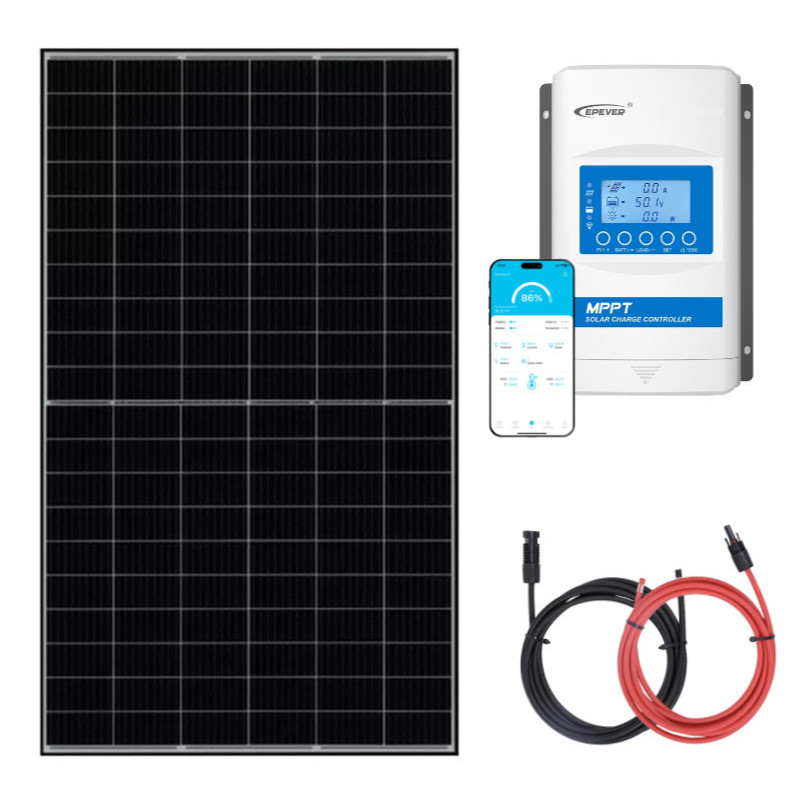 W zestawie znajduje się wysokiej jakości monokrystaliczny panel słoneczny oraz regulator ładowania od firmy EPEVER, które zapewniają wydajną i bezpieczną pracę systemu. Dodatkowo, w komplecie znajdują się wszystkie niezbędne przewody i złącza, co umożliwia bezproblemowy montaż.