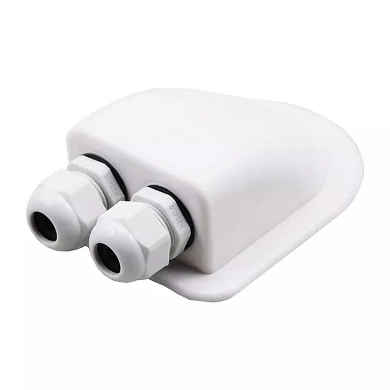 Przejściówka dachowa z 2 wyjściami zabezpieczająca przewody biegnące przez dach. Wodoszczelna, odporna na promieniowanie UV.